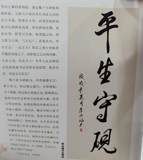 李永福先生书法艺术境界深远,博古览今,书写流畅,柔中带刚,在不失传统的基础上,自我风格独特,形成自己的风格,深受人们的喜爱,许多作品被国内外友人收藏。